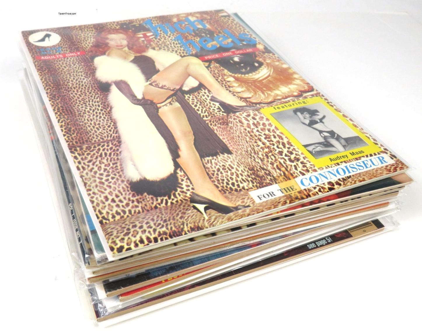 Varying condition. Some with backerboards. What you see is what you get. Vampirella # 48, #57, #70, #71 and #72. Errie #95. MAN Magazine Oct. 1957. HI-LIFE Magazine Nov. 1958. HIGH HEELS Magazine Issue 2. 1950s Real photo nudie girl wallet. Comic books as shown.