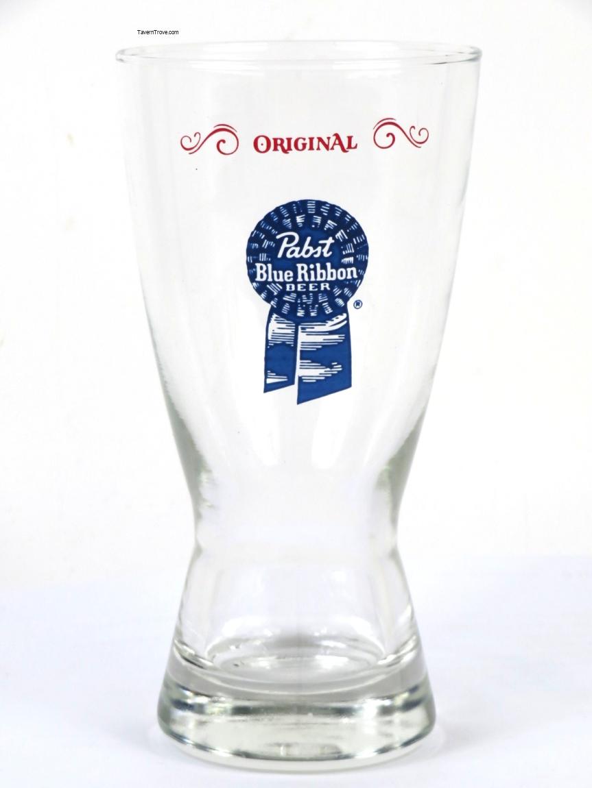 Larger enamel painted hourglass pilsener glass. Measures 6 inches tall.