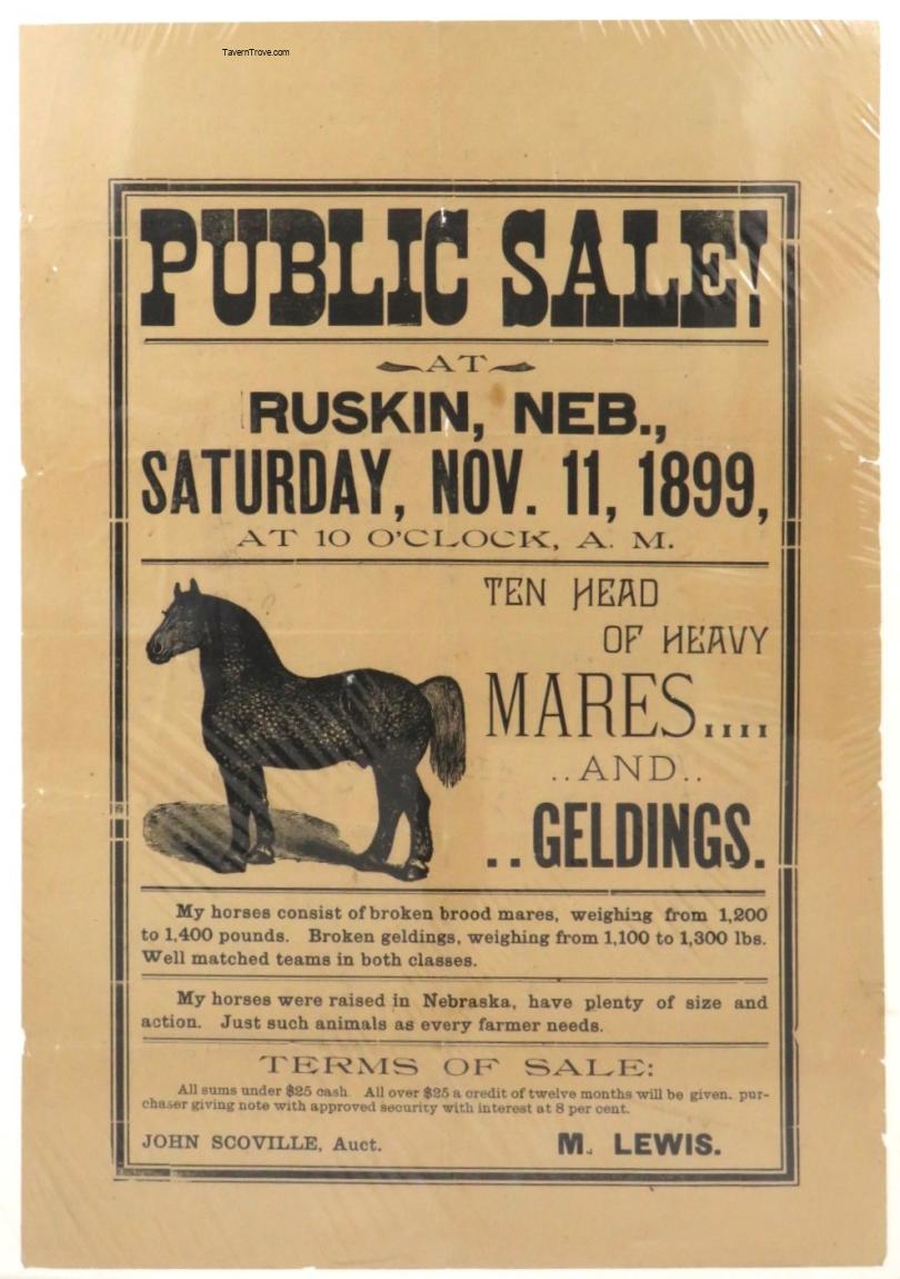 Ruskin Nebraska Horse Auction Handbill Sign Item #114180