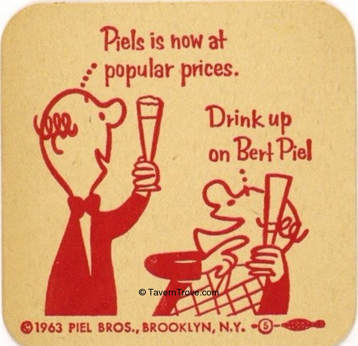 "Piels is now at popular prices." "Drink up on Bert Piel"
