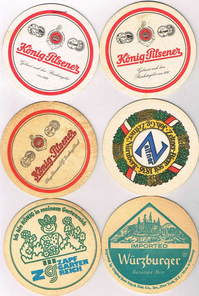 Lot of SIX 4-Inch Coasters Konig Pilsner Zeltner Beer Coaster Item #114485