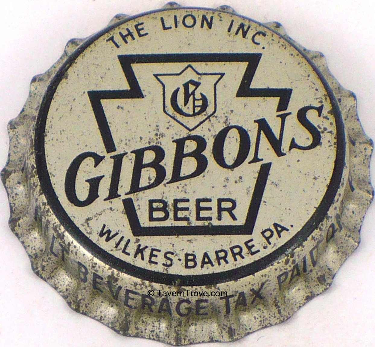 Gibbons Beer ~PA Pint Tax (silver) Bottle Cap Item #15359