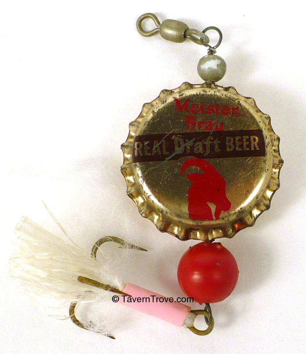 Functioning lure with bottle caps , beads and treble hook. Measures about 4½ inches long.