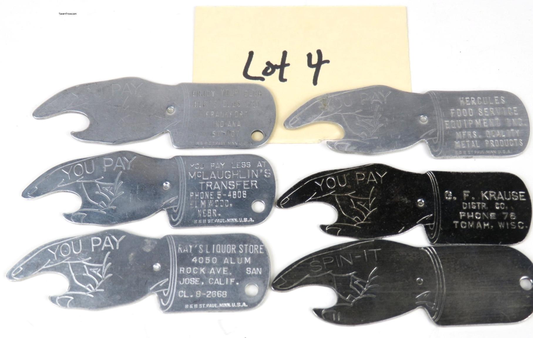 Spinner Bottle Advertising Openers Lot of SIX #4 Flat Bottle Opener Item #113484