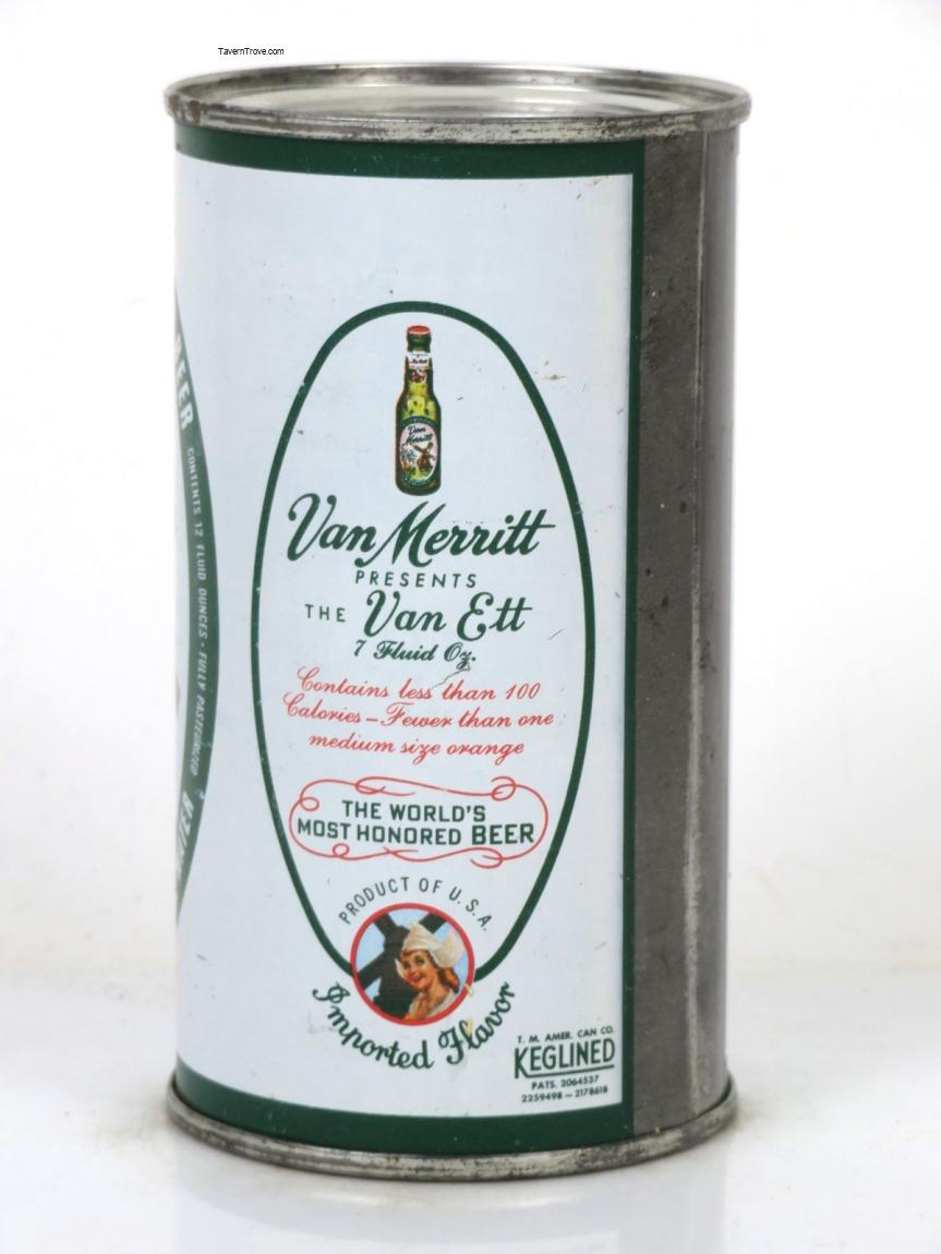 Rare can with "Van Merritt Presents the Van Ett, 7oz" on the back panels. Rolled with a few small spots, as shown in the photos.