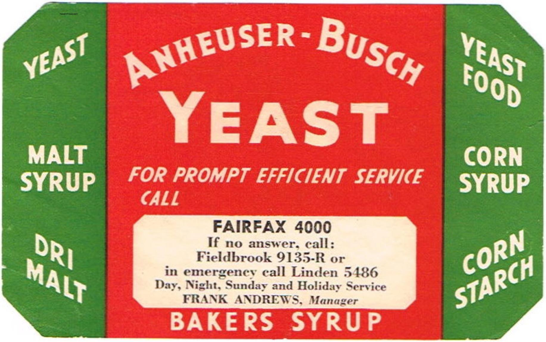 Anheuser-Busch Yeast Label Item #92196