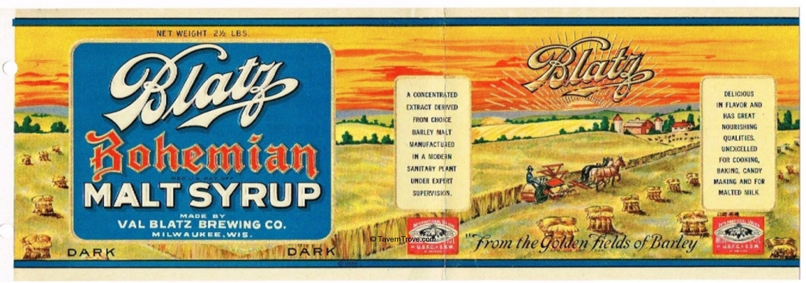 Very graphic embossed label. Contents 2½ Pounds. Creased. Holes punched at left. Measures about 14 inches long.