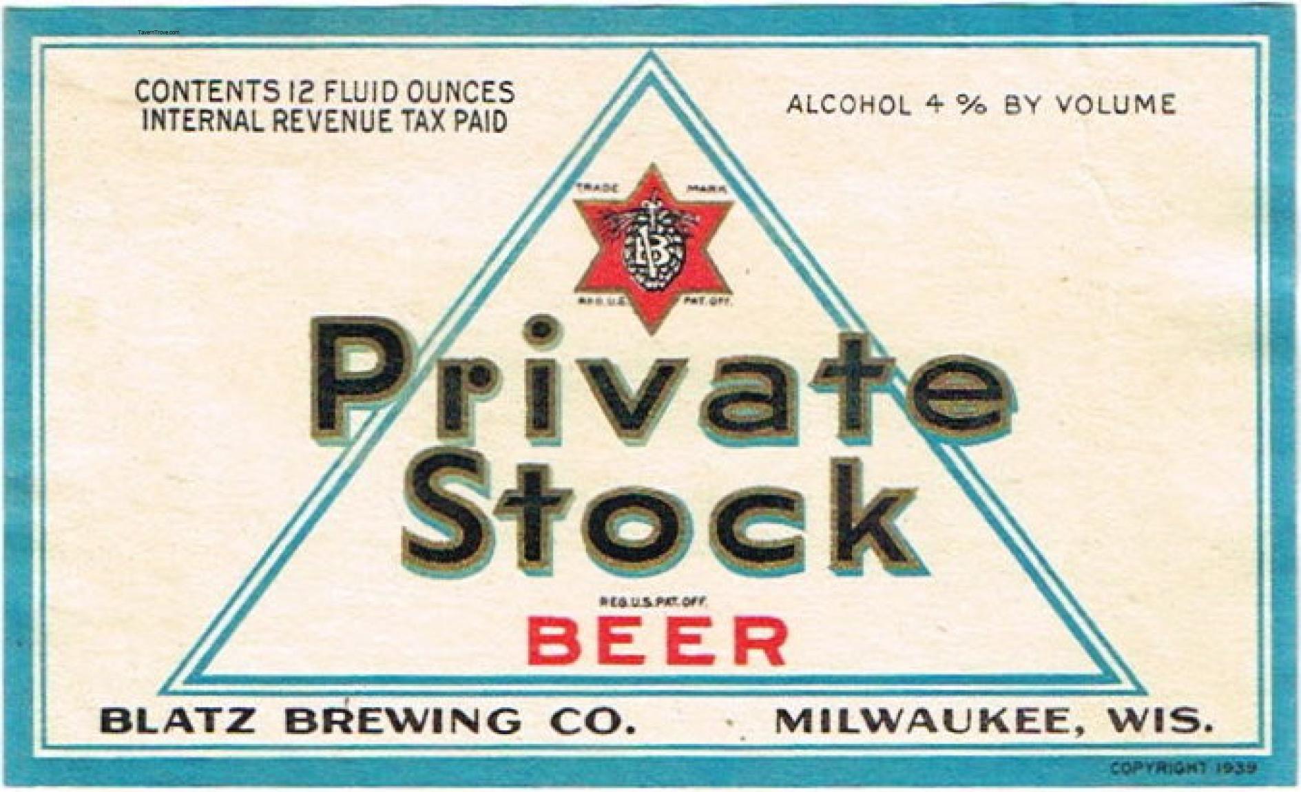 Blatz Private Stock Beer Label Item #108453