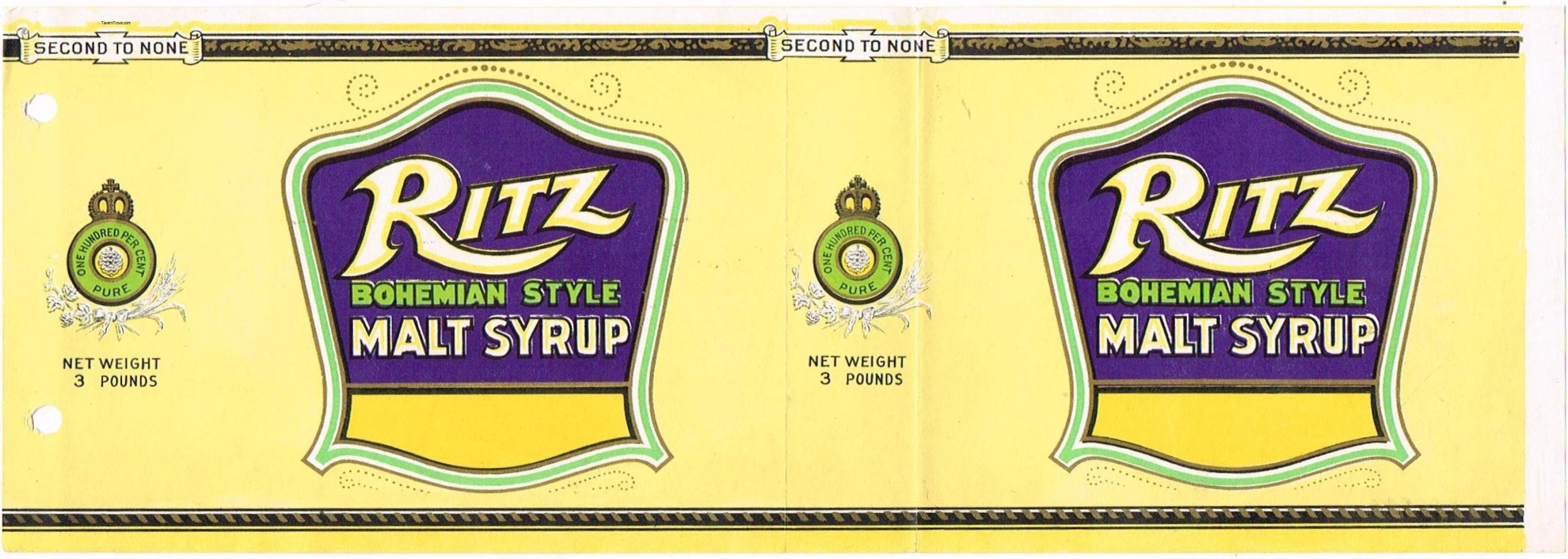 Blatz Ritz Bohemian Style Malt Syrup 3 Lb. Label Item #109381