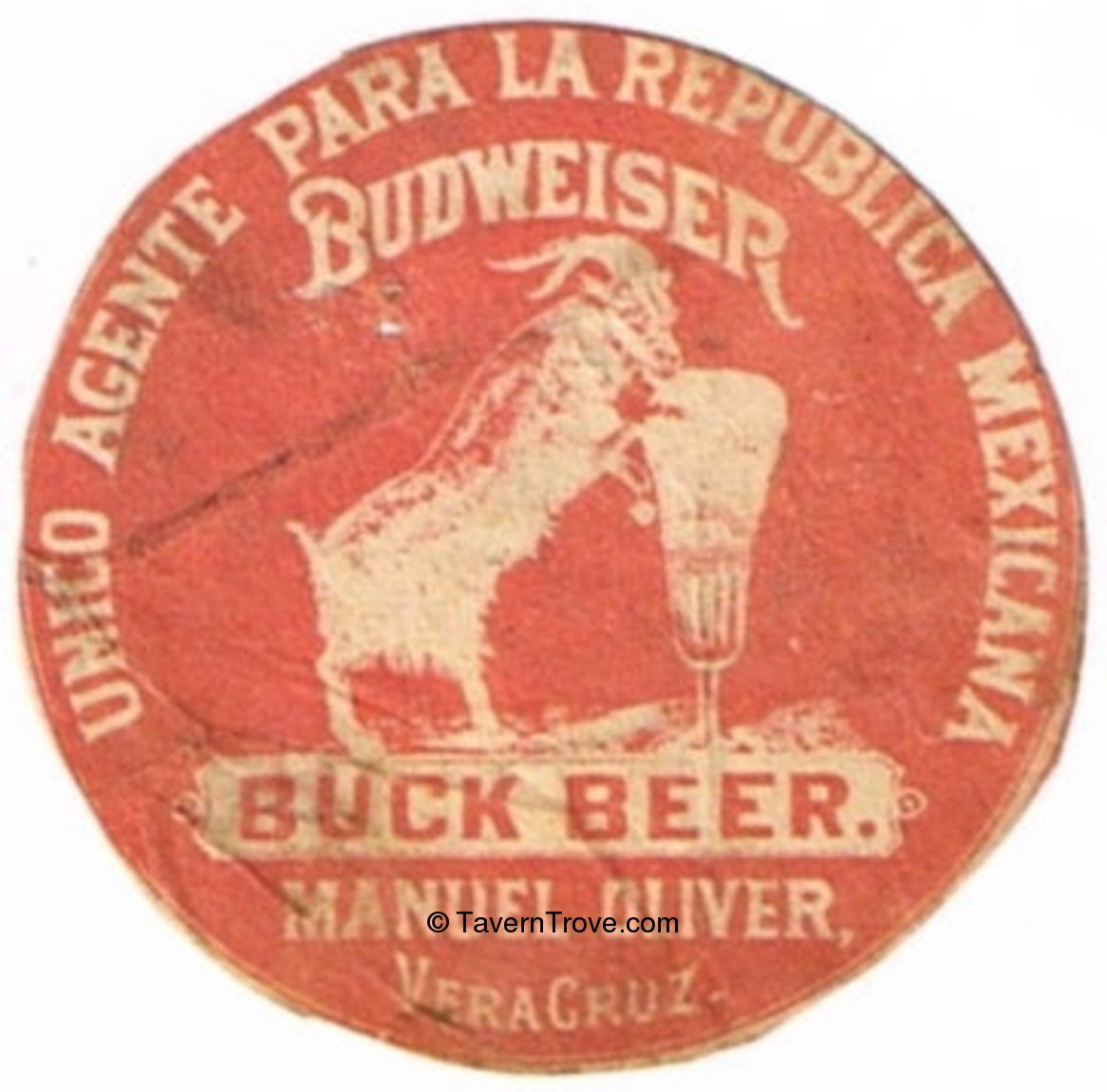 Made for Manuel Oliver, Mexican agent for Anheuser-Busch in Veracruz. Small label measures about 2½ inches in diameter.