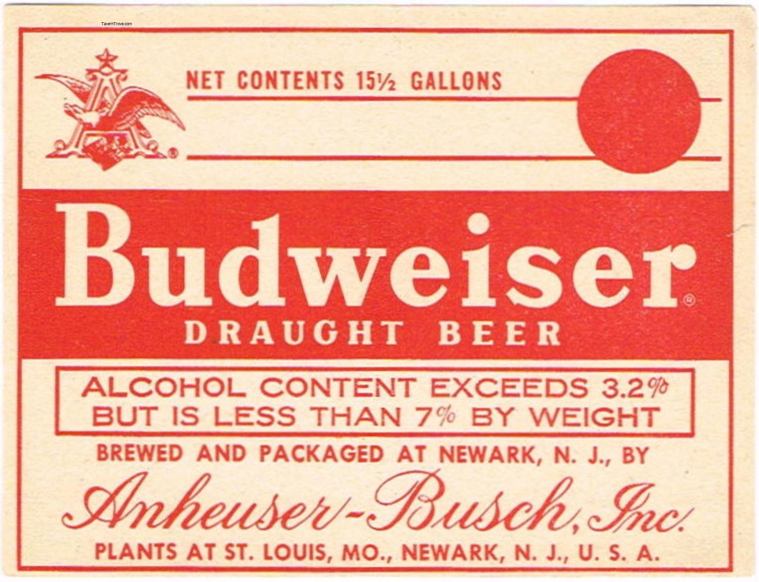 Budweiser Draught Beer Label Item #92344