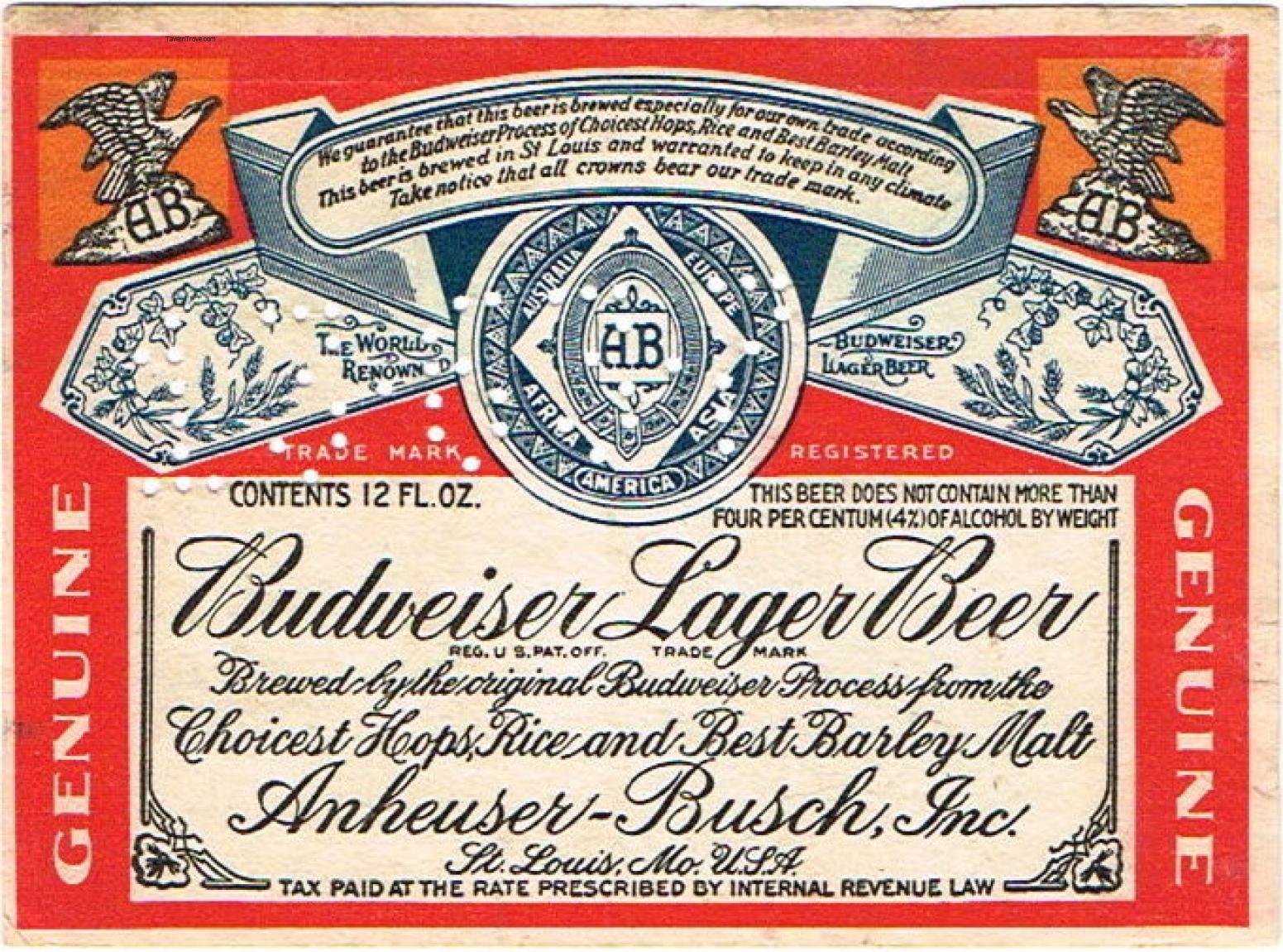 Budweiser Lager Beer Label Item #92159