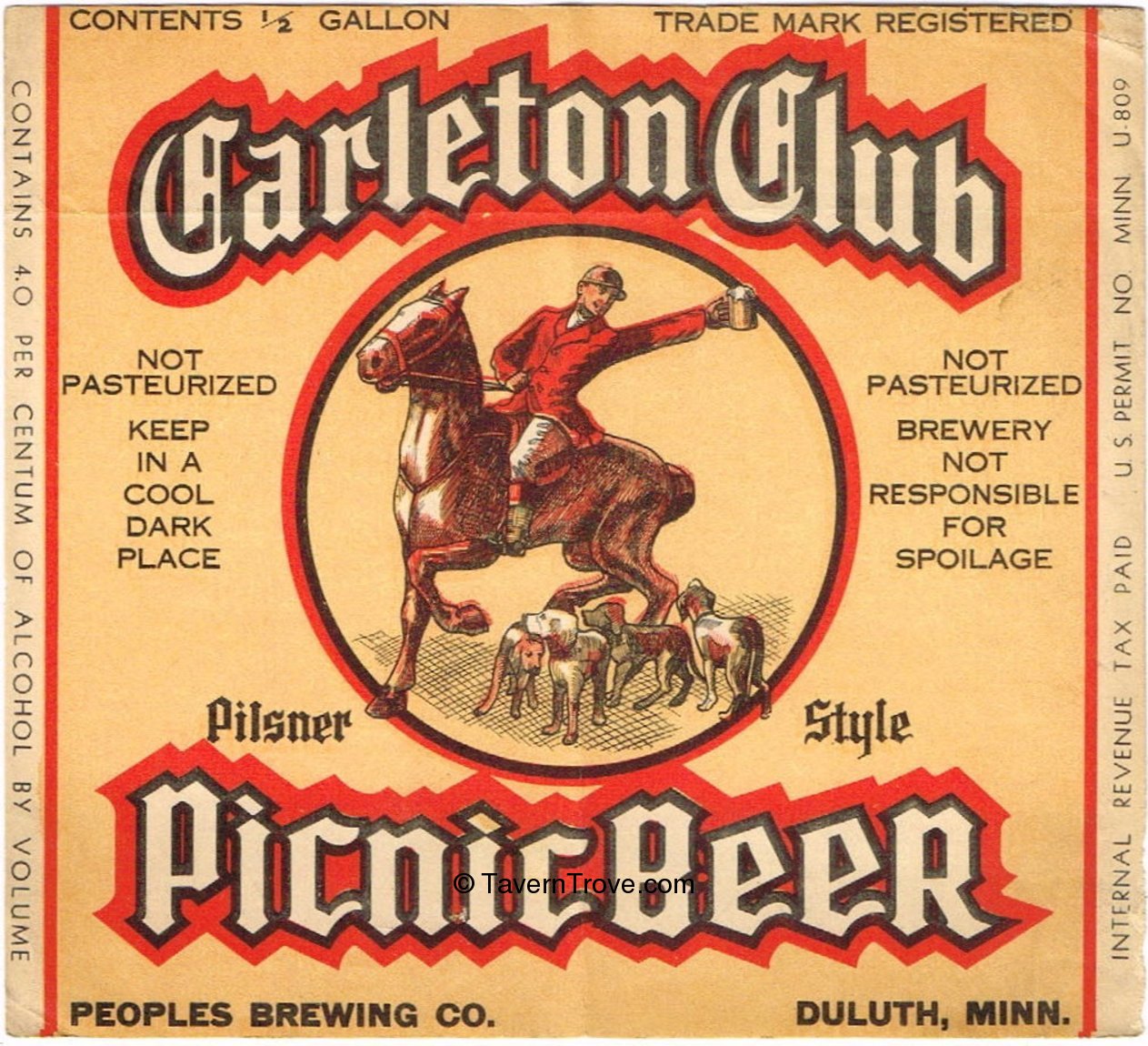 Carleton Club Picnic Beer Label Item #100431