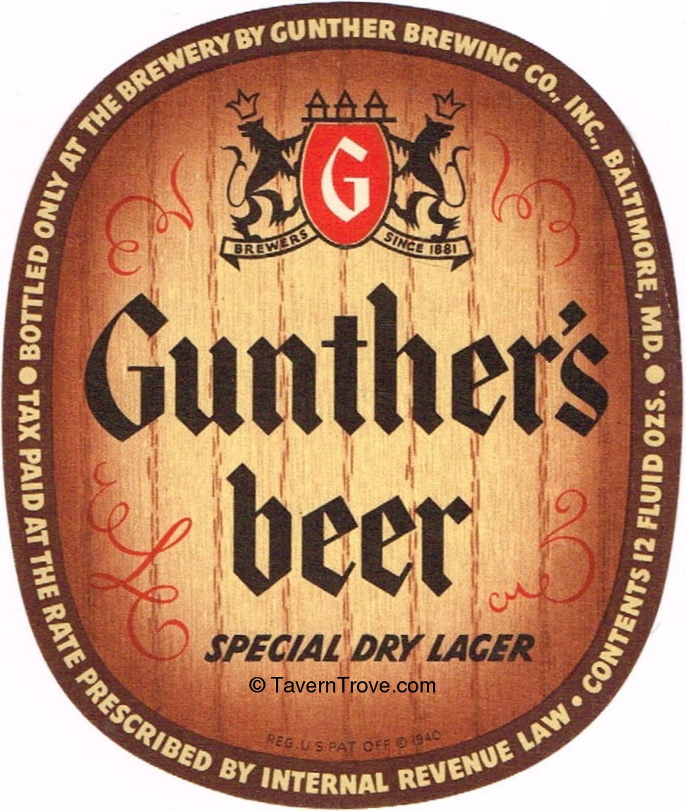 Gunther's Beer Label Item #100116