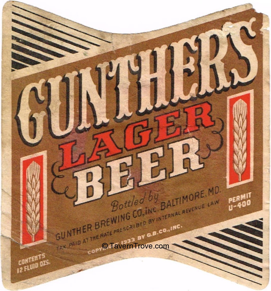 Gunther's Lager Beer Label Item #58742