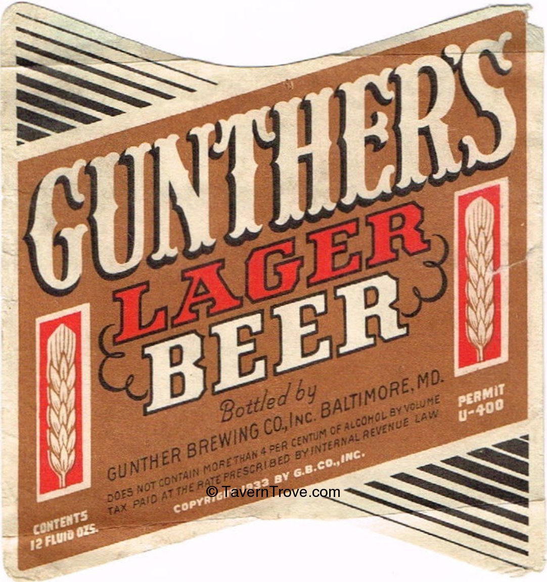 Gunther's Lager Beer Label Item #87297