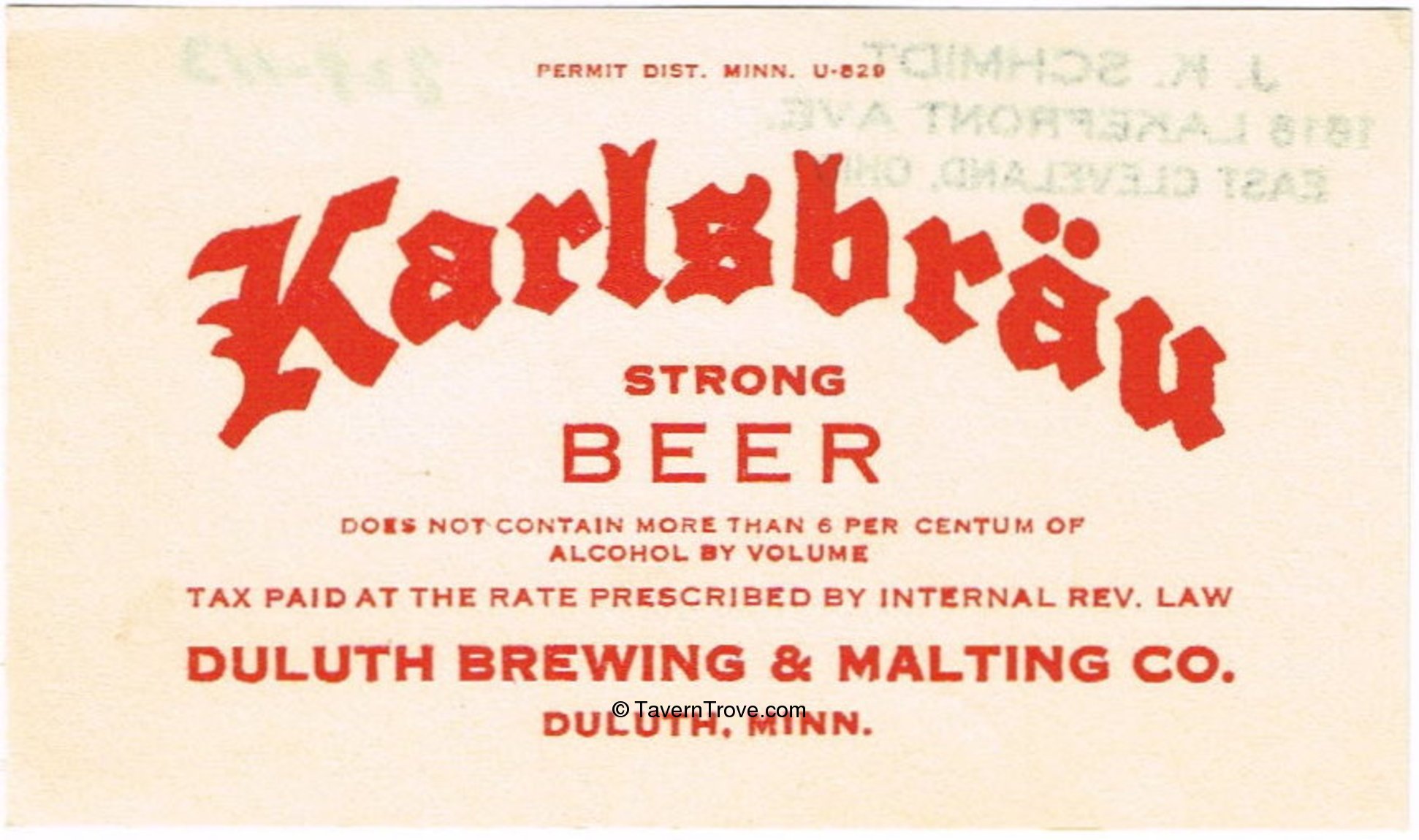 Karlsbrau Beer Label Item #100415