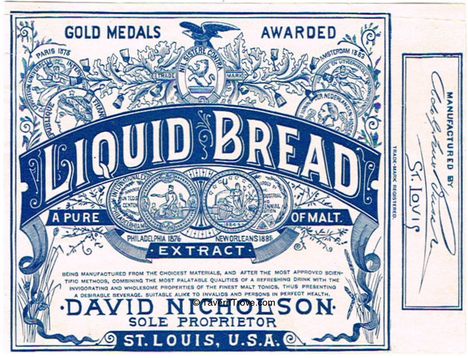 Riding on the Anheuser-Busch reputation, displaying their many medals on the label. Signed Adolphus Busch on the side.