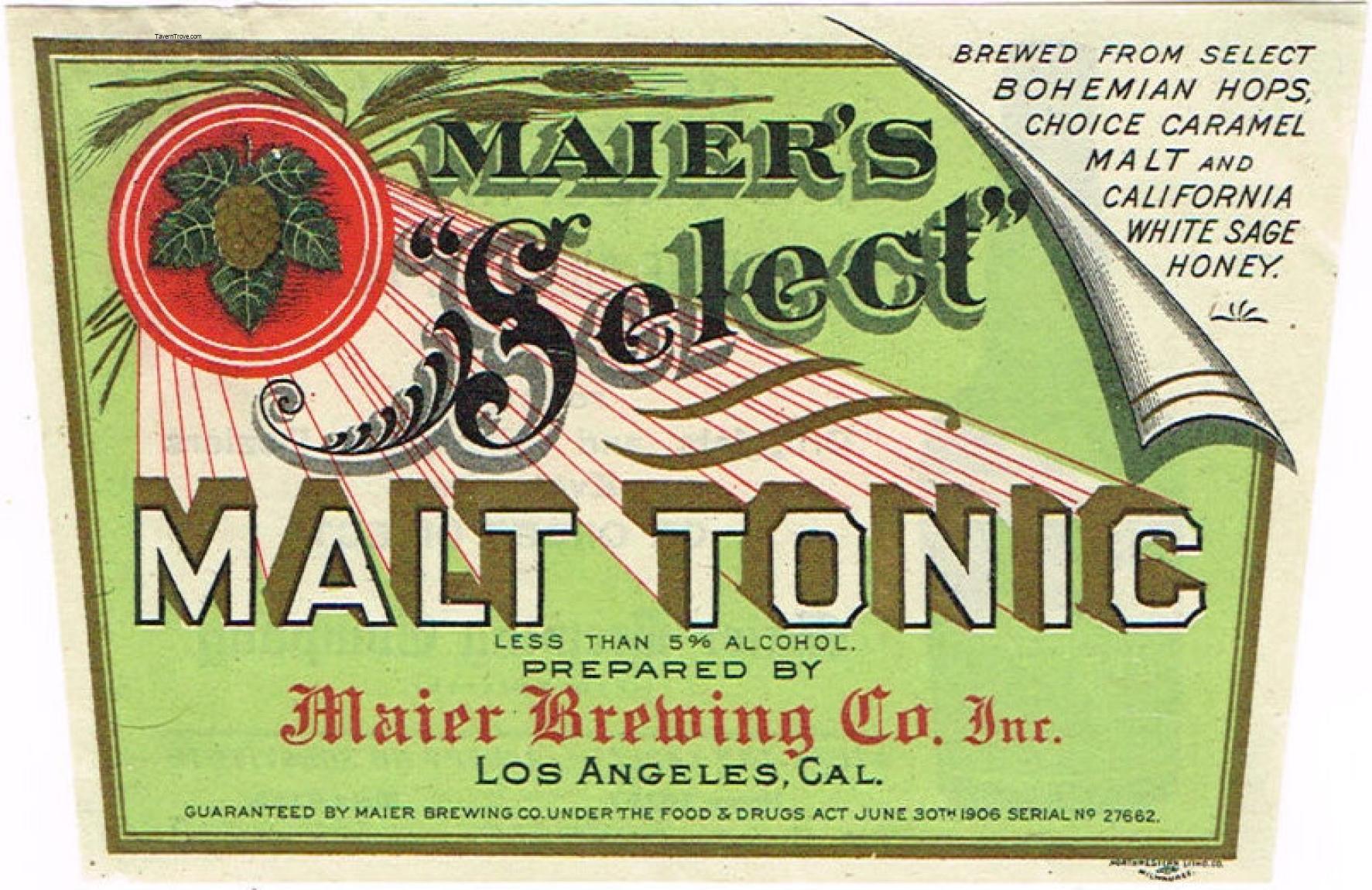 Maier's Select Malt Tonic Label Item #92267