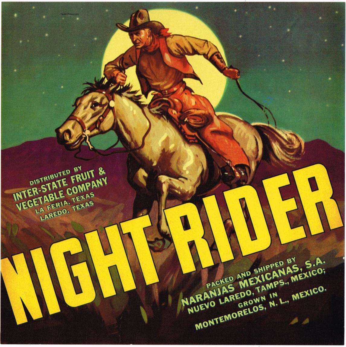 Night Rider Fruit Crate Label La Feria & Laredo Texas Label Item #104339
