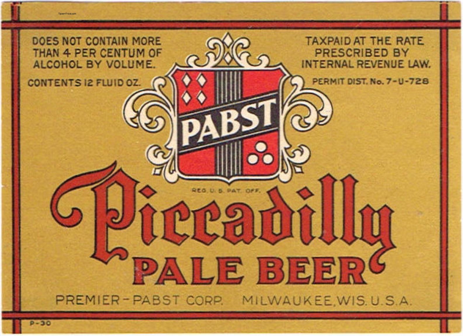 Piccadilly Pale Beer Label Item #91144