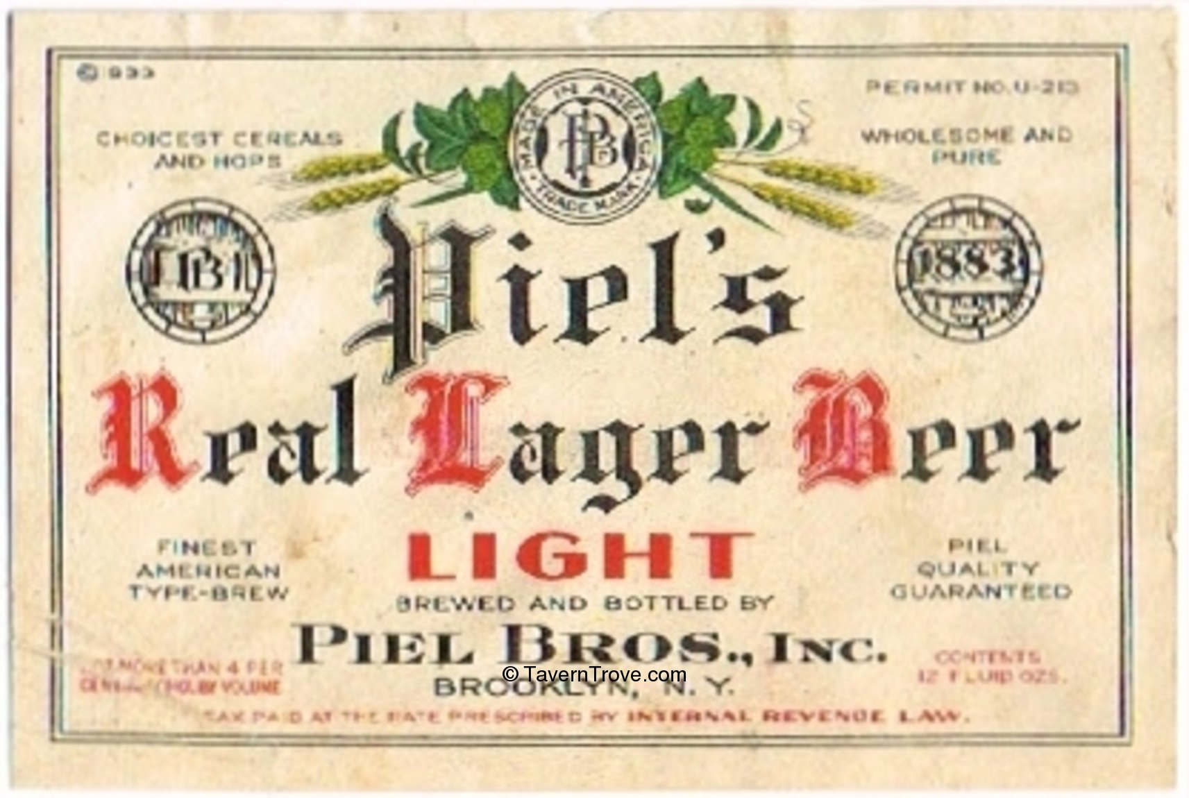 Piel's Real Light Lager Beer Label Item #23861
