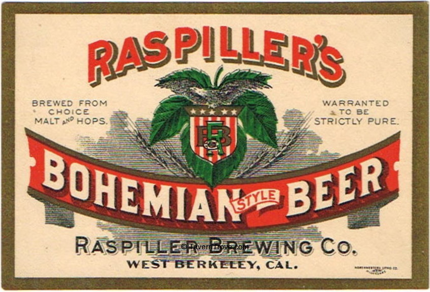 Raspiller's Bohemian Beer Label Item #86544