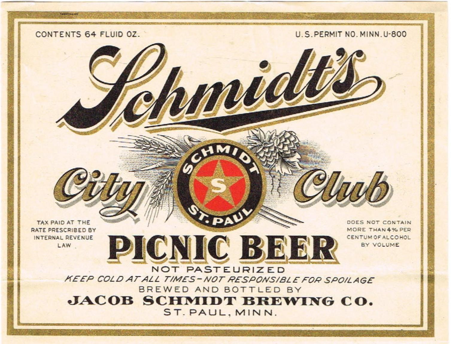 Schmidt's City Club Beer Label Item #102355