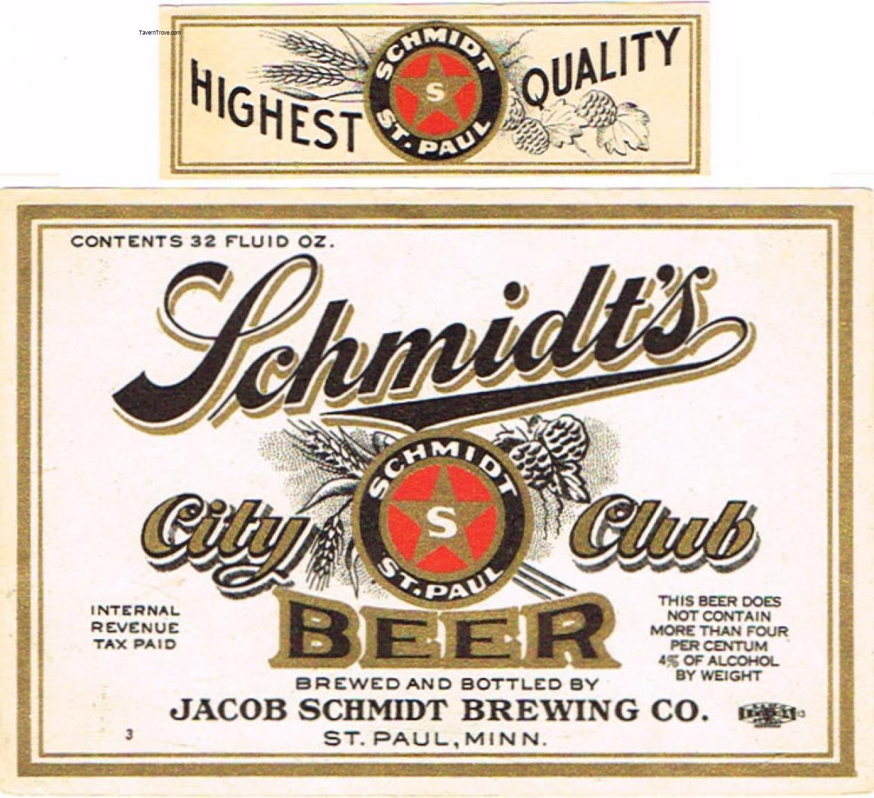 Schmidt's City Club Beer Label Item #102357