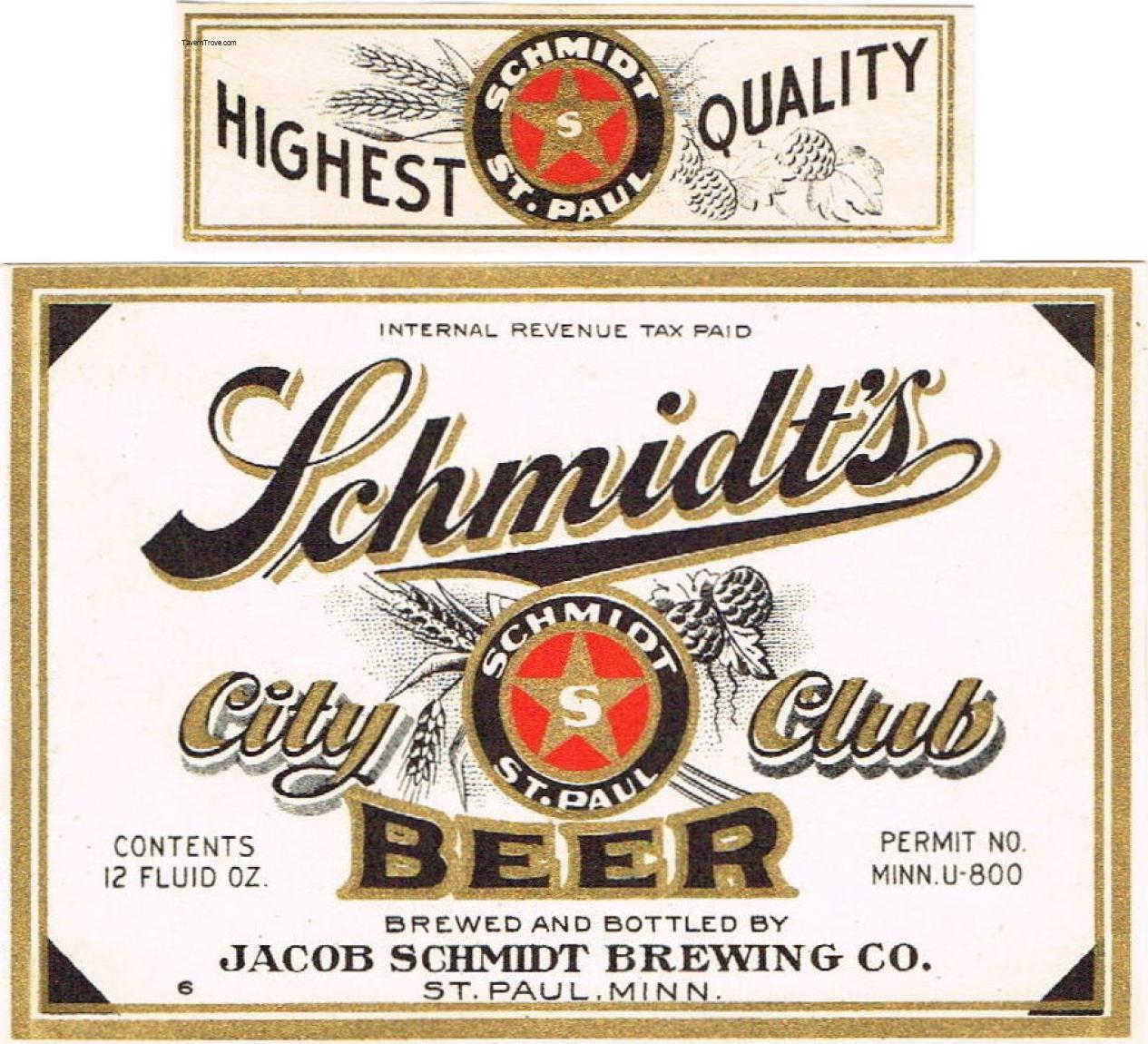 Schmidt's City Club Beer Label Item #102361