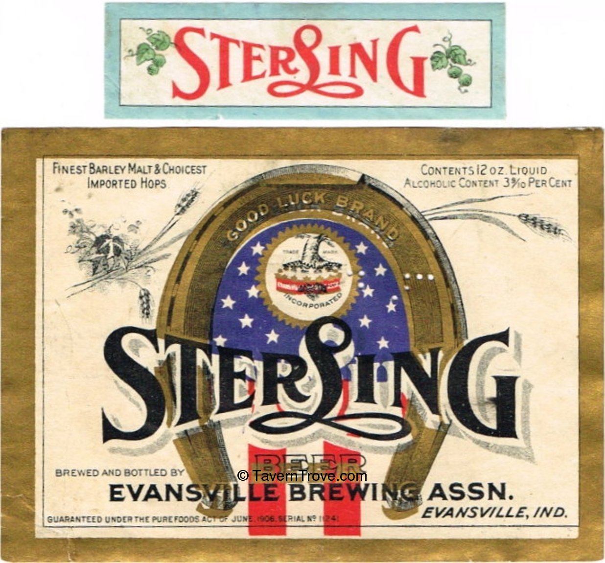 Bottom left corner damage. This label was originally collected by world traveler, author, and eccentric Dr. Henry Stephens III. He collected Beer and Mineral Water labels between 1905 and 1928. He died in 1932.