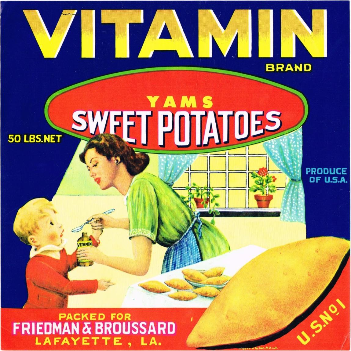 Vitamin Yams Sweet Potatoes Fruit Crate Label Lafayette Louisiana Label Item #104334