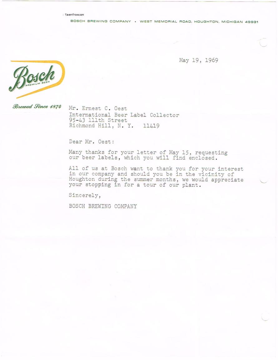 Bosch Brewery Correspondence Uncle Ernie Oest Letterhead Item #109368