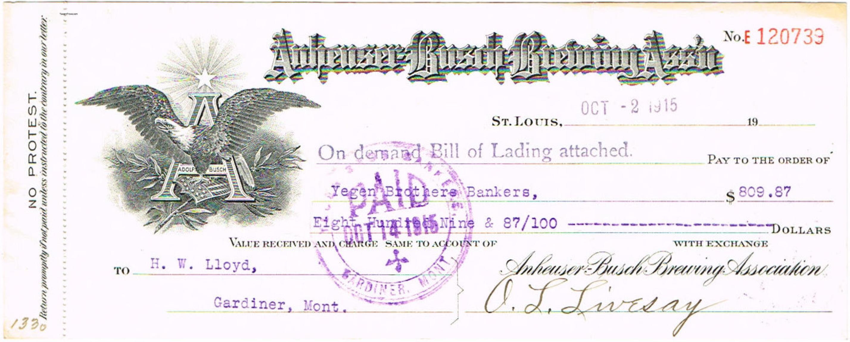 To H. W. Lloyd of Gardiner, Montana. Signed O. L. Livesay