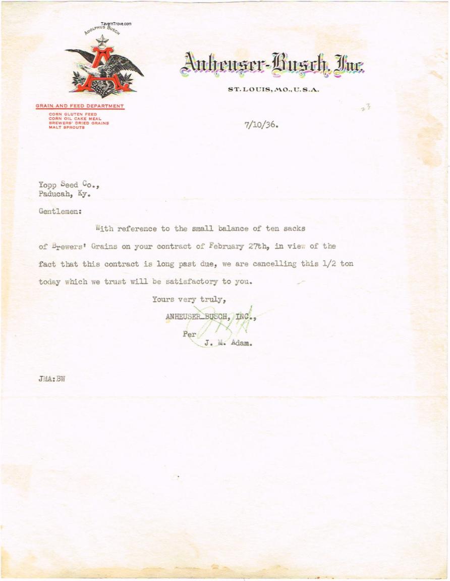 Signed by J. M. Adam.