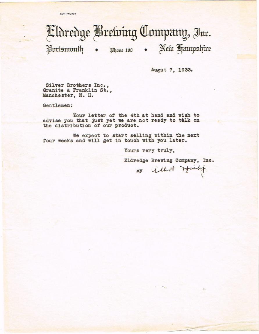 Interesting letter from the brewery to a potential distributor concerning the state of brewery affairs 5 months after repeal.