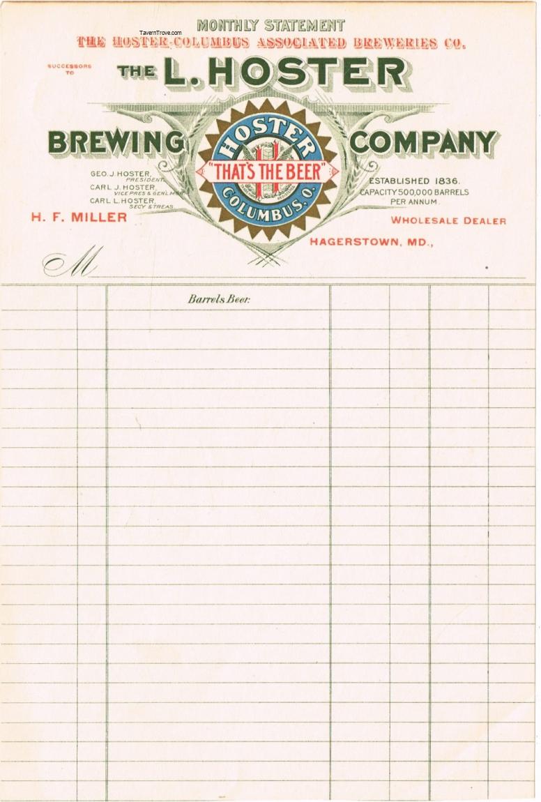 H. F. Miller Hoster Brewery Billhead Letterhead Item #104448