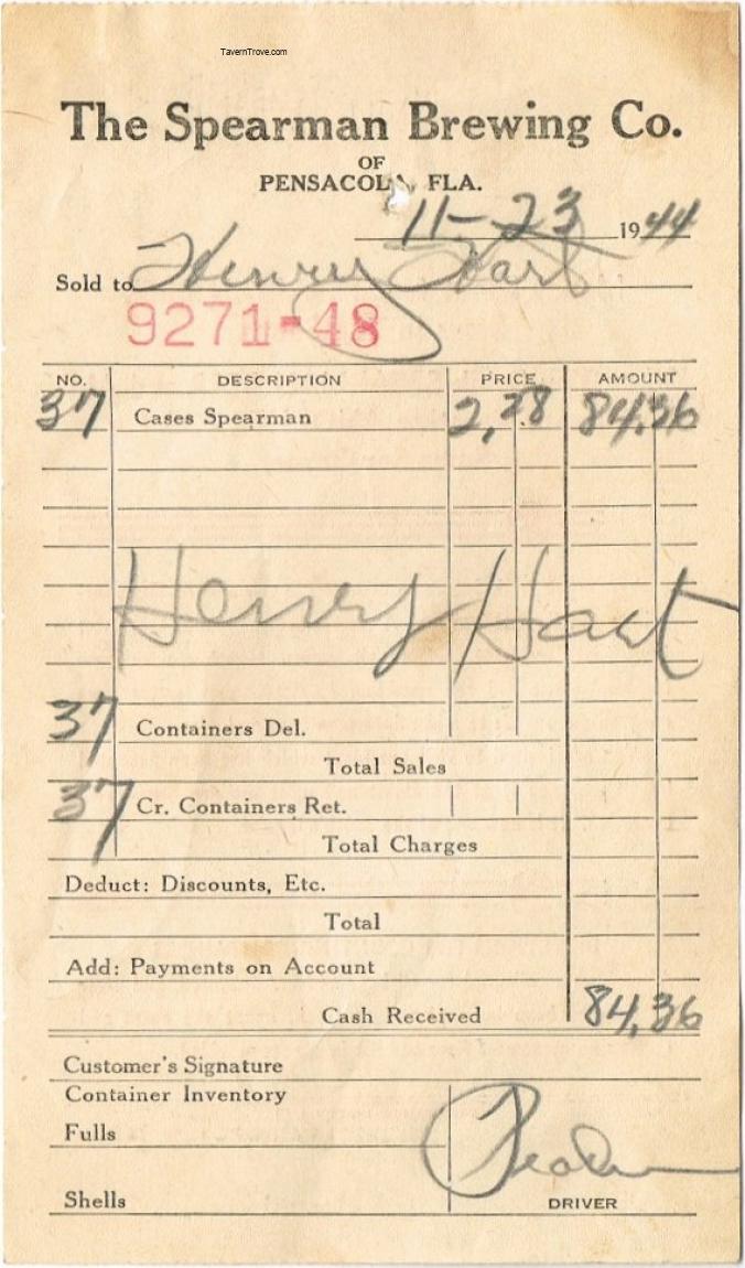 Spearman Brewing Co. Receipt Letterhead Item #104314