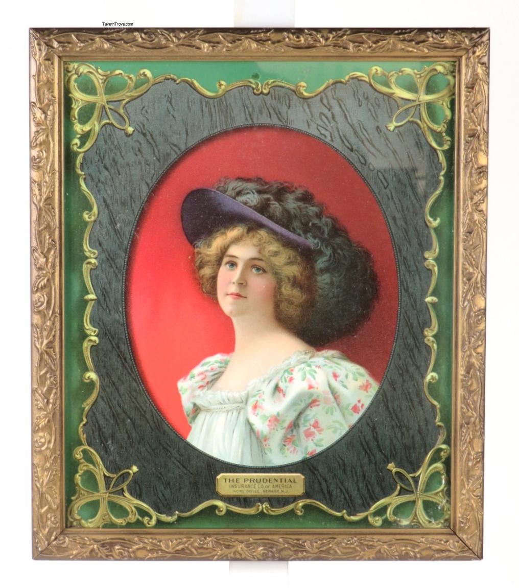Gobson Girl with large feathered hat. Lithograph 11½ x 13½ inches tall in the original frame.