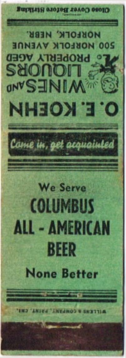 All-American Beer (Green) Matchcover Item #110857