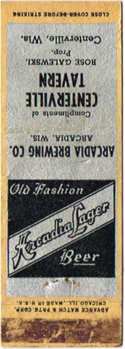 Arcadia Lager Beer Matchcover Item #107284