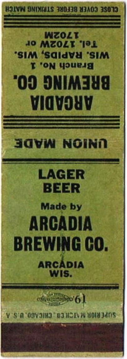 Arcadia Lager Beer Matchcover Item #107292
