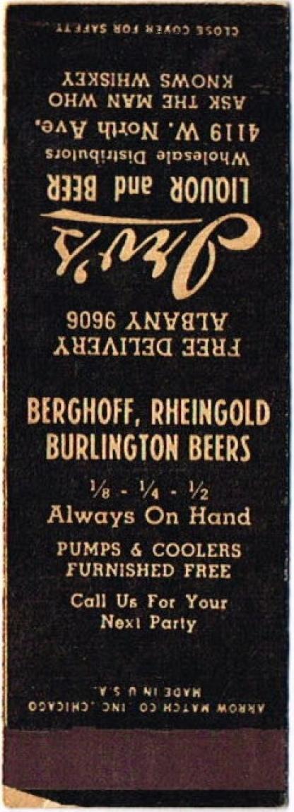 Berghoff Beer Matchcover Item #107394