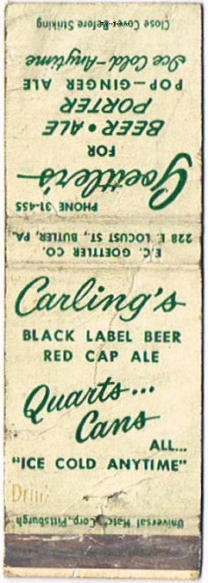 Black Label Beer/Red Cap Ale and Rolling Rock Matchcover Item #110766