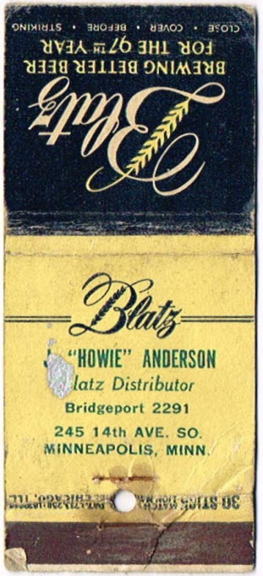 Blatz Beer Matchcover Item #103819