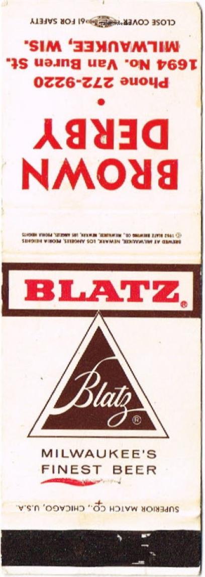Blatz Beer Matchcover Item #106626