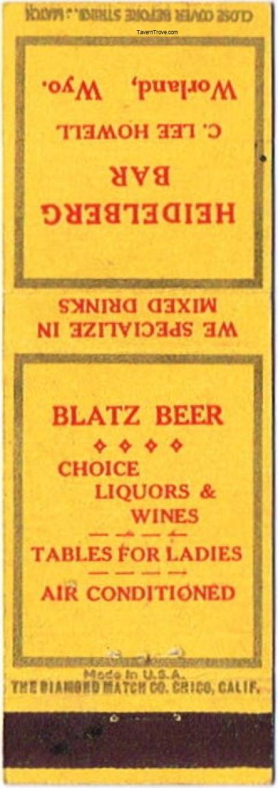 We specialize in mixed drinks. "Distances From Heidelberg Bar" to various towns in Wyoming, Montana, Utah and Colorado on reverse.