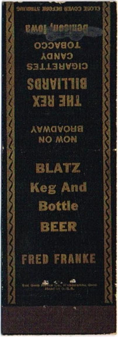 Blatz Beer Matchcover Item #107437