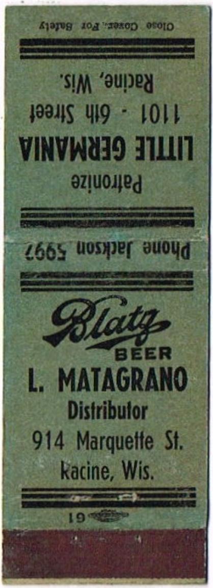 Blatz Beer Matchcover Item #25733