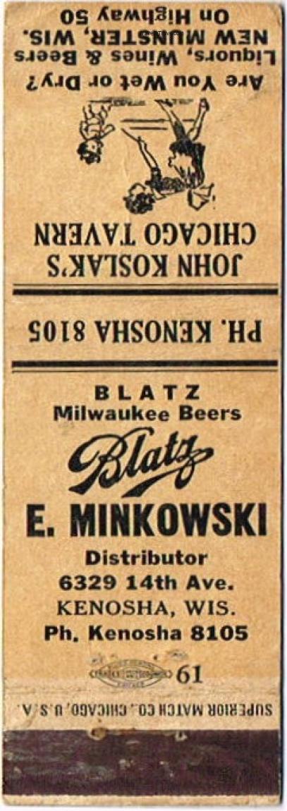 Blatz Milwaukee Beer Matchcover Item #107476